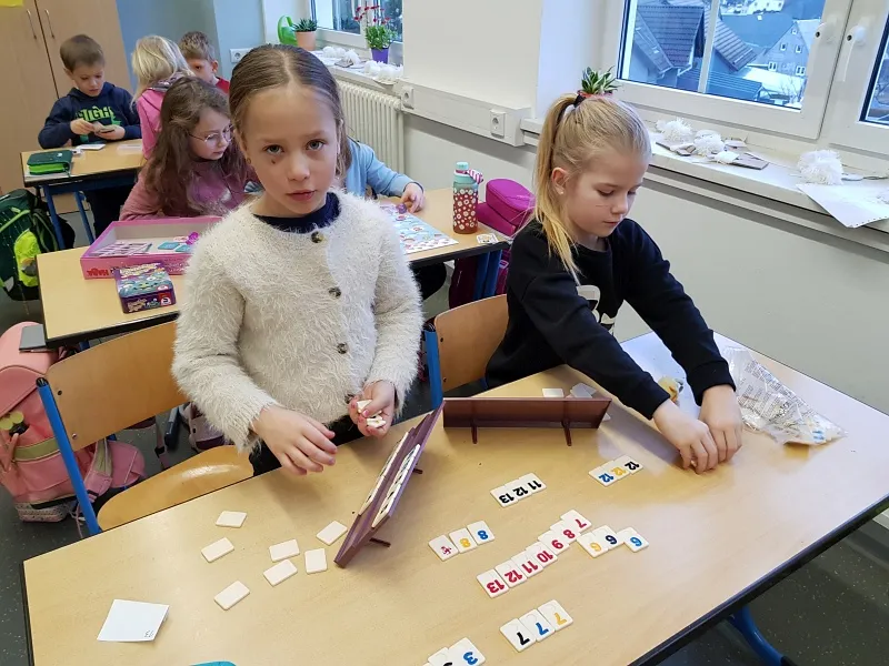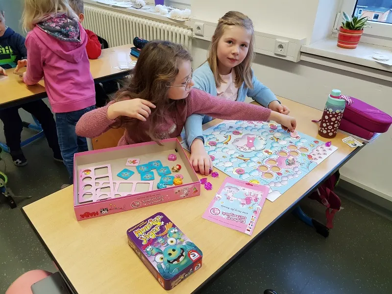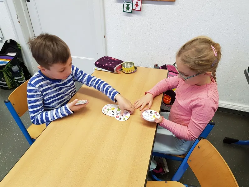 Es darf gespielt werden! Die Erstklässler konnten es gar nicht erwarten, am letzten Tag vor den Winterferien loslegen zu können. Viele verschiedene Spiele fanden den Weg von Zuhause ins Klassenzimmer. Natürlich wollte jeder gewinnen. Auch verlieren muss bekanntlich gelernt werden. Ruckzuck verflog unsere Spielezeit. Wir werden es bald mal wieder machen. Bis dahin üben bestimmt einige Kinder z. B. das Festhalten sowie Mischen von Spielkarten. Manche bringen es schon richtig gut. Super!